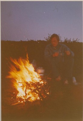 Vill också höja en varningsflagg för att elda. På bilden är vi alldeles intill en å och det hade regnat rätt mycket under några veckor innan. Är det torra somrar – elda inte.
