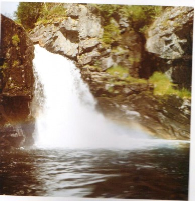 Den här fina ån heter Slepsikån och rinner i Borgafjällen. Just där forsen övergår till ett svart, ganska djupt vatten, landade jag en fin öring. Det var före digitalkamerornas tid och jag har tyvärr inget bildbevis.