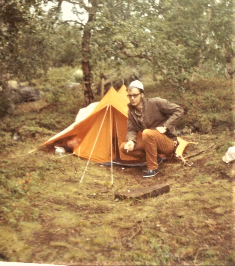 En självklarhet idag är ha ett riktigt tält. Men eftersom ingen av oss hade ett fjälltält då, så hyrde vi ett hos en sporthandlare, men det var inte så motståndskraftigt mot varken regn eller blåst, vilket vi hade en del av de första dagarna.