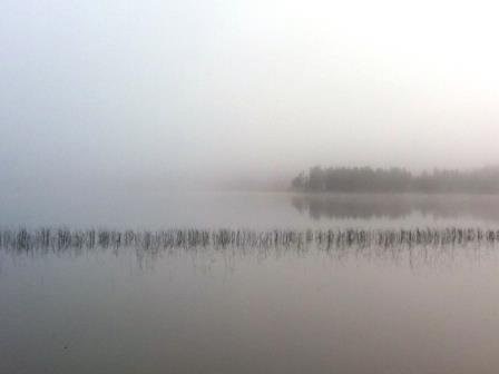 Dimman kröp sakta iväg över sjön