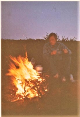 Jag flyttar till en annan plats, och en annan tid där hjärtat bor, men där jag ofta hänger min hatt är i Oviksfjällen, Gräftåvallen. Här är det samma Janne som jag nämnde tidigare och vi sitter en natt vid elden, innan vi somnar i tältet, ja, egentligen utanför tältet. Temperaturen var sån att tältet blev för varmt.